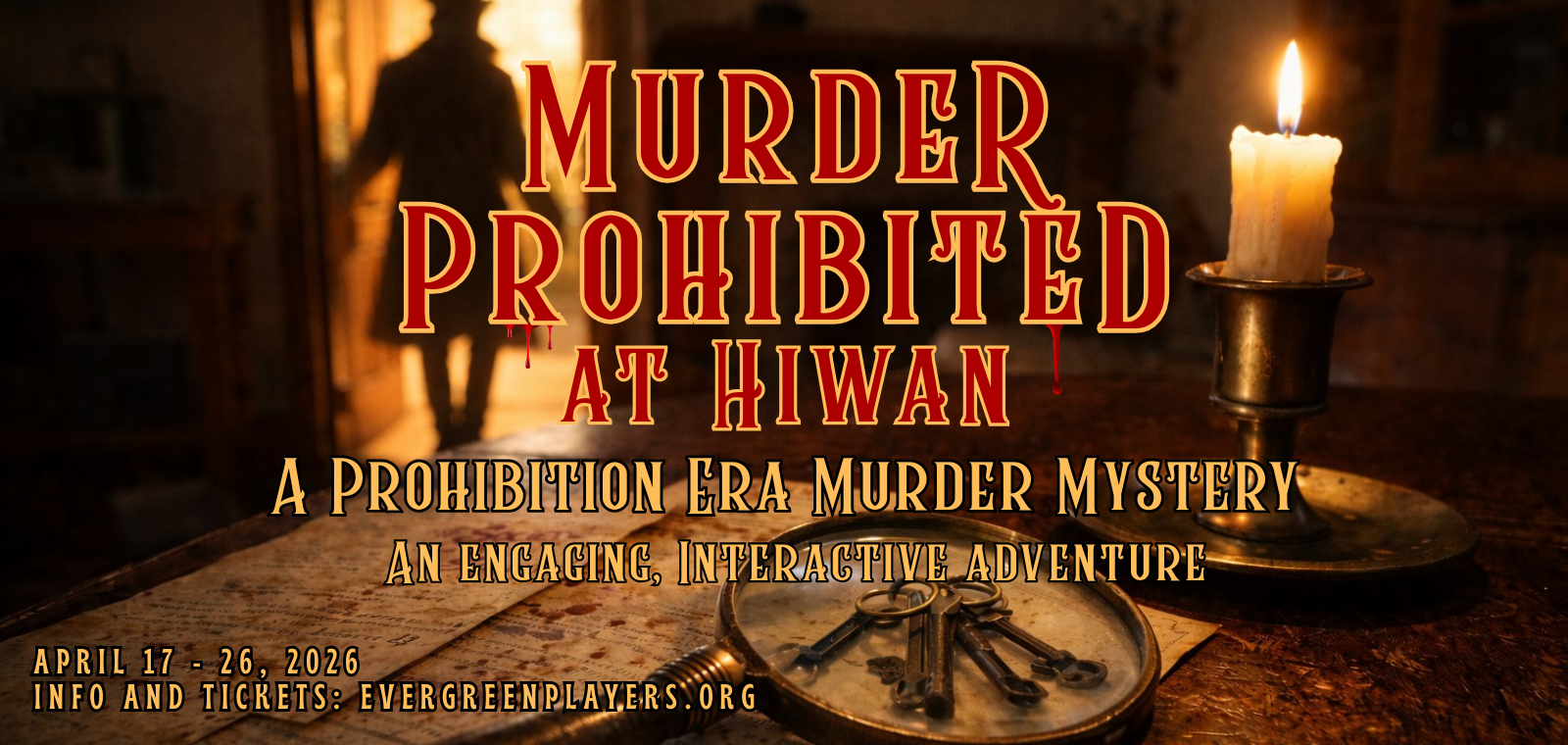 Evergreen Players and Hiwan History Museum are teaming up to offer an immersive, interactive mystery event within the former log home of Dr. Neosha Josepha Williams Douglas, built between 1893 and 1918 located on Meadow Drive in Evergreen. The museum transforms into the 1920’s home of former crime boss Victor Moretti, and the small audience, as “guests” for Moretti’s speakeasy party assist Detective Gunn in solving the ensuing crime. This offers a unique theatrical experience where actors will engage directly with audience members who become active participants in solving the crime.